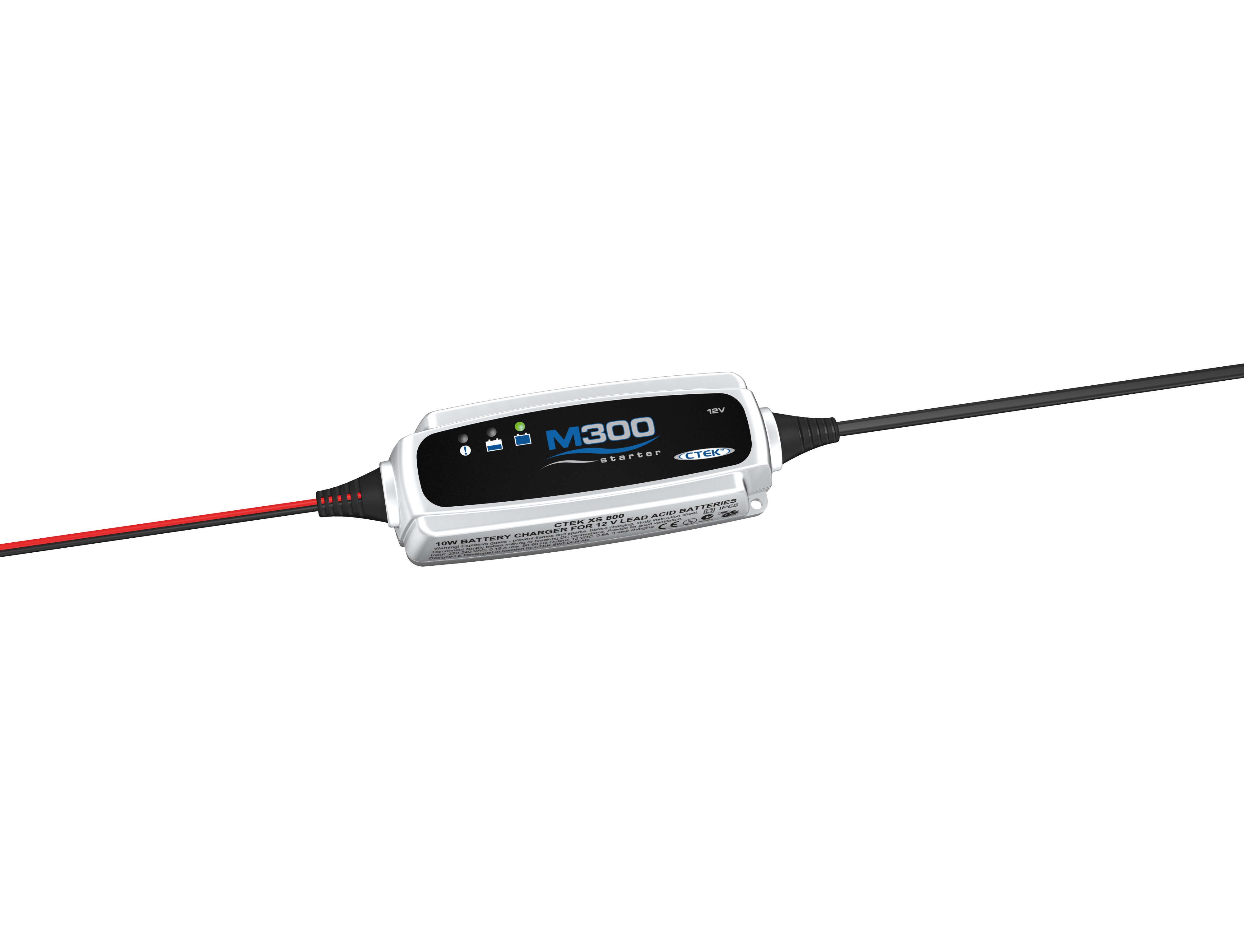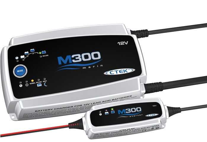 Výkonný,automatický, vode odolný 12V nabíjač ideálny pre použitie na lodiach a v karavanoch. Je vhodný pre nabíjanie a udržiavanie olovených batérií všetkých druhov vrátane AGM a GELových. Osemfázový nabíjací profil spolu s vyhľadením nabíjacieho prúdu zaisťujú maximálne využitie potenciálu batérií. Jehorobustný, 4m dlhý pripojovací kábel je na viac zakončený i teplotným snímačom, vďaka čomu dokáže M 300 efektívne regulovať parametre nabíjania. K ďalšej výbave patria režimy *RECOND* pre regenerovanie hlboko vybitých akumulátorov a *NIGHT*, ktorý zaistí na dobu 8 hodín celkom tichú prevádzku. M 300 môže zostať ľubovoľne dlho pripojený, pričom batérie udržuje v najlepšej možnej kondícii. Stačí tlačidlom zvoliť požadovaný režim. O všetko ostatné potom bude inteligentne a nadmieru bezpečne postarané. Jeho bonus je s tím to modelom dodávaný aj nabíjač *M300-starter*( ekvivalent typu XS 0,8 12V) vhodný pre menšie akumulátory.